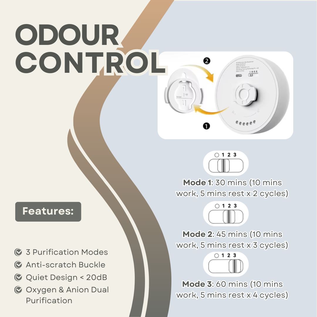 Powered by a 4000mAh rechargeable battery, this purifier provides up to 7 days of worry-free operation on a single charge. Choose between three convenient modes for tailored odour elimination.